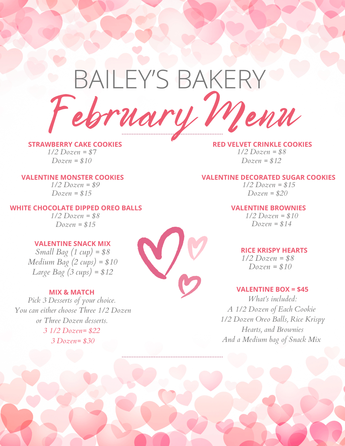 My Valentine’s menu is officially out and filled with sweet, festive treats made from scratch - perfect for gifting, sharing, or treating yourself this Valentine’s Day. 💕🍪🍫 Click the button below to see each dessert and their descriptions, be sure to place yours soon and make this Valentine’s Day extra sweet! 💕🍪🍫