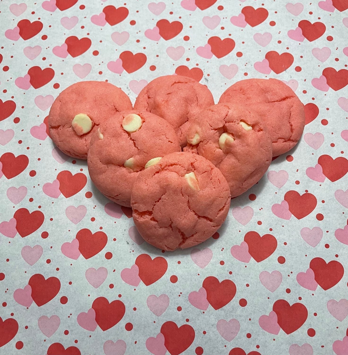 Soft, chewy cookies bursting with sweet strawberry flavor and filled with creamy white chocolate chips - just like a slice of strawberry cake in cookie form. 🍓🍪
