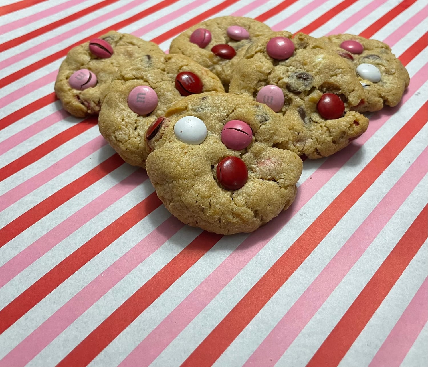 Thick, chewy monster cookies packed with oats, chocolate chips, and festive Valentine’s M&M’s - fun, colorful, and perfect for sharing the love. 💕🍪